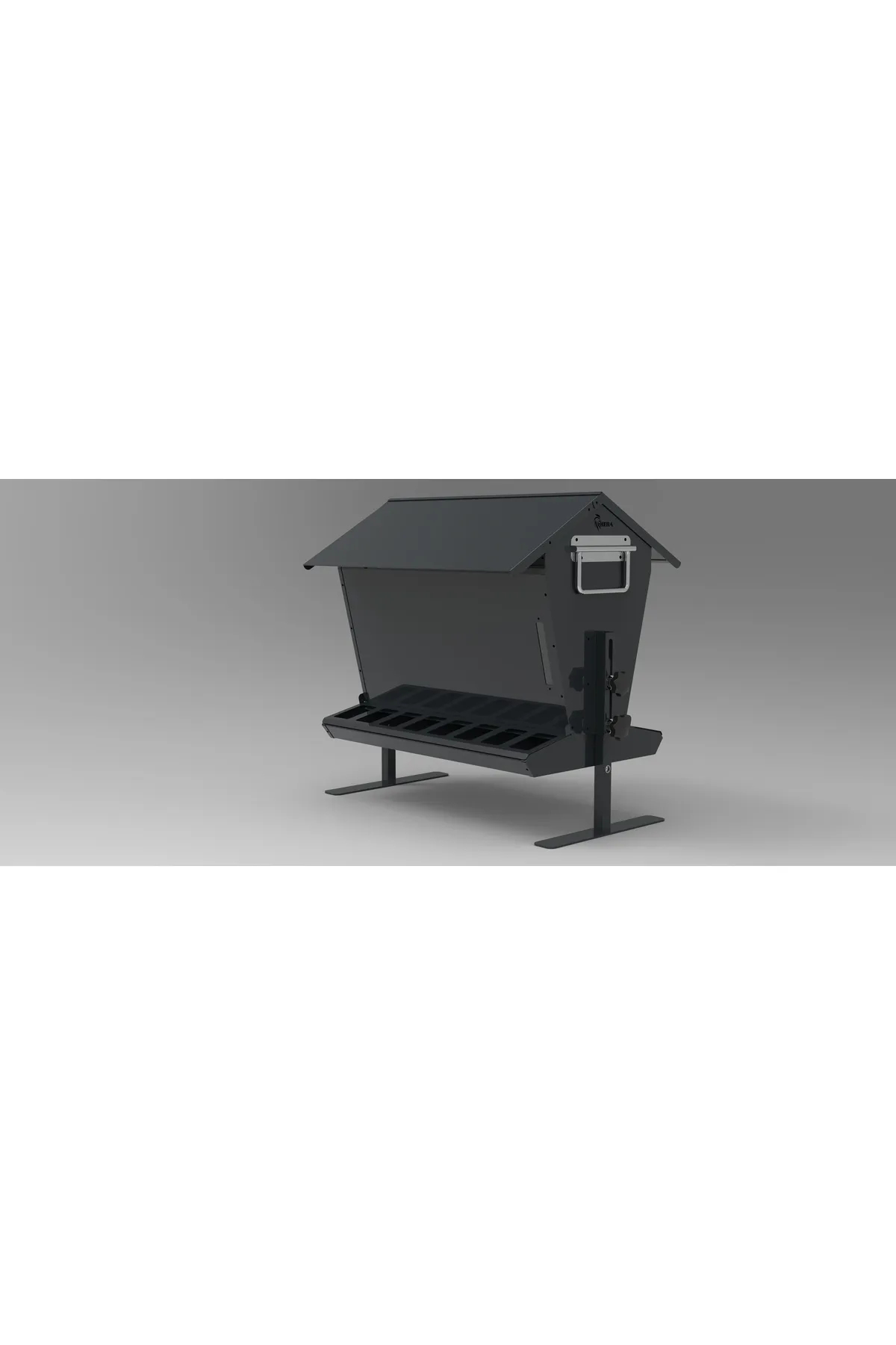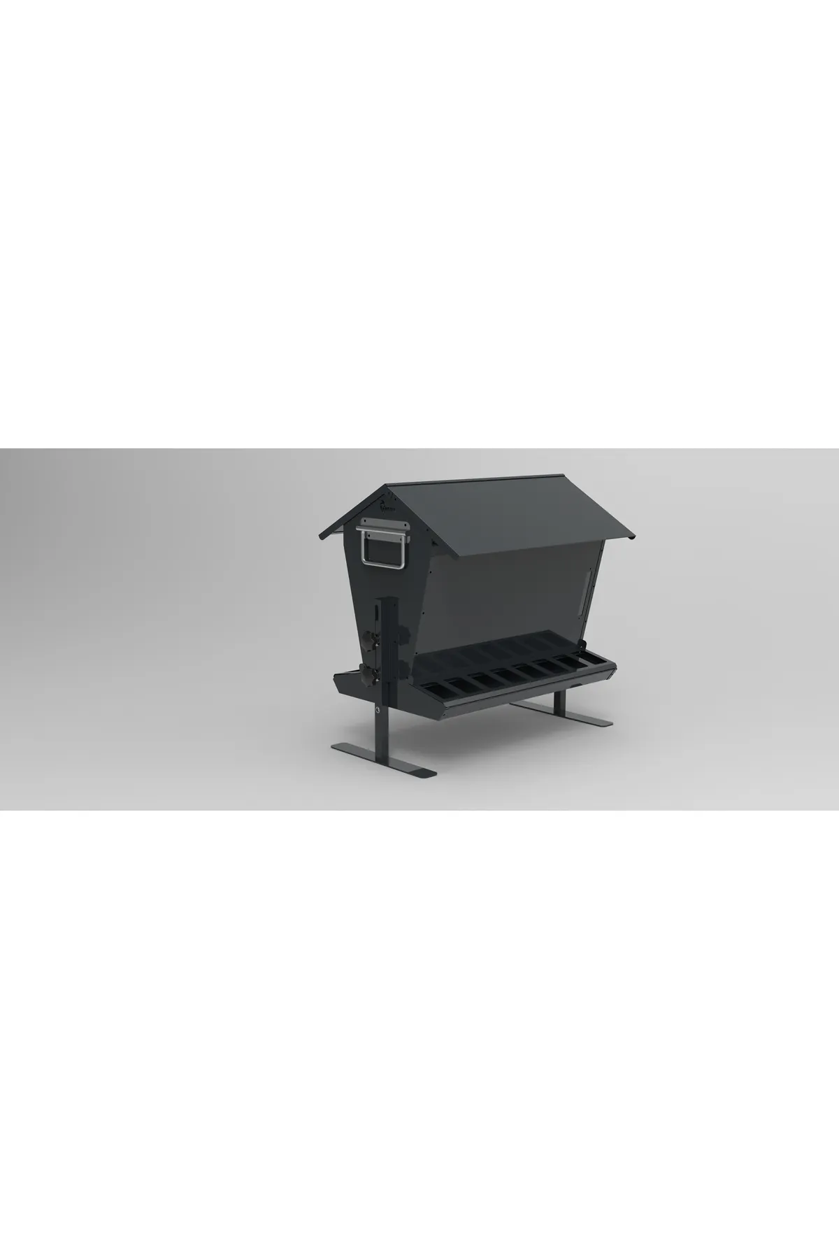 24 kg Kapasiteli Çatılı, Çift Taraflı Metal Tavuk Yemliği (Antrasit Gri)
